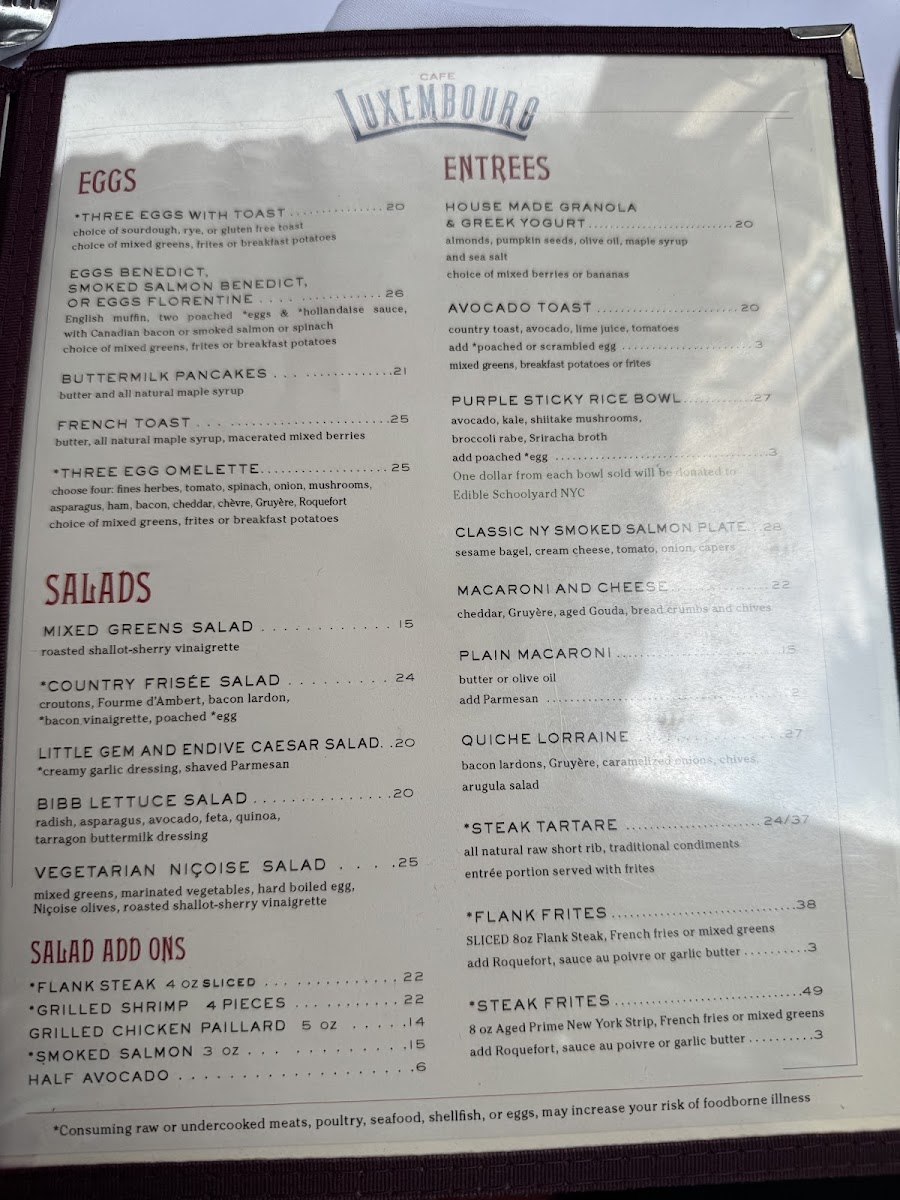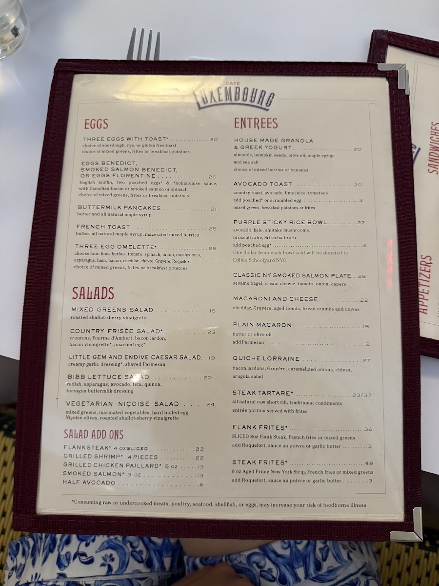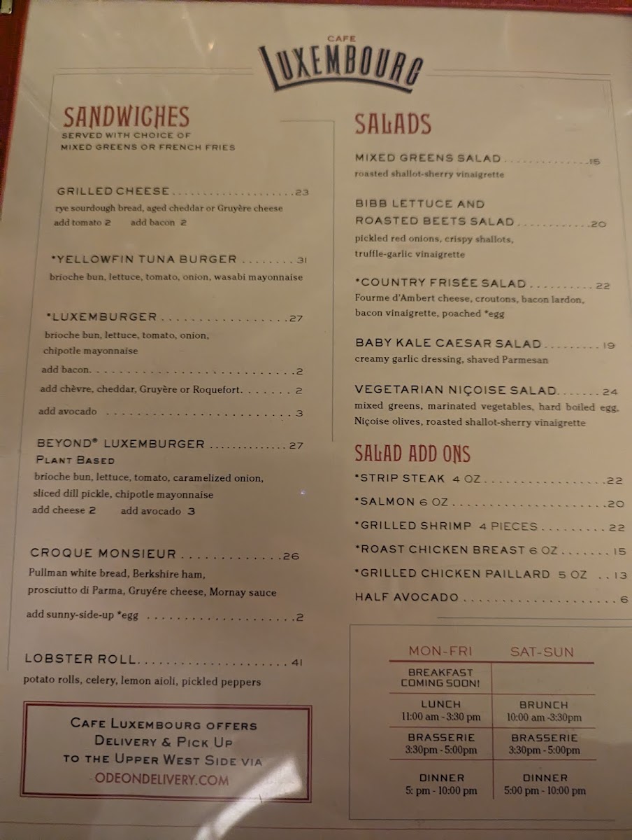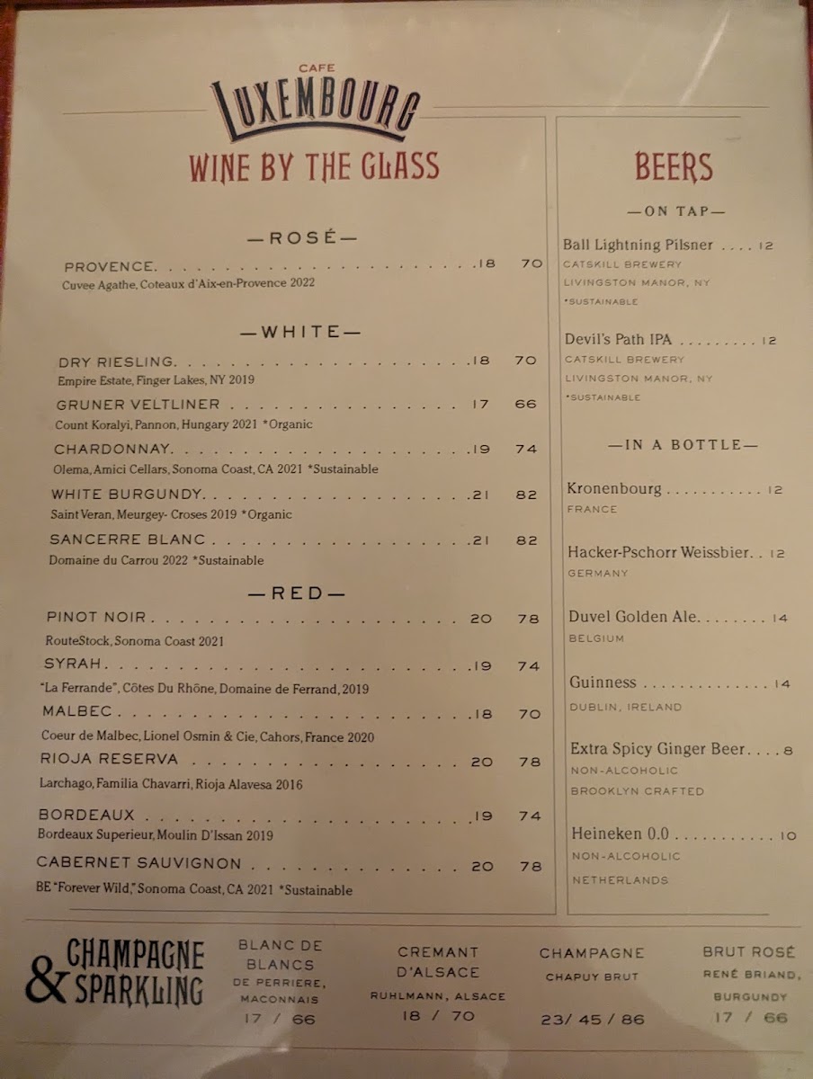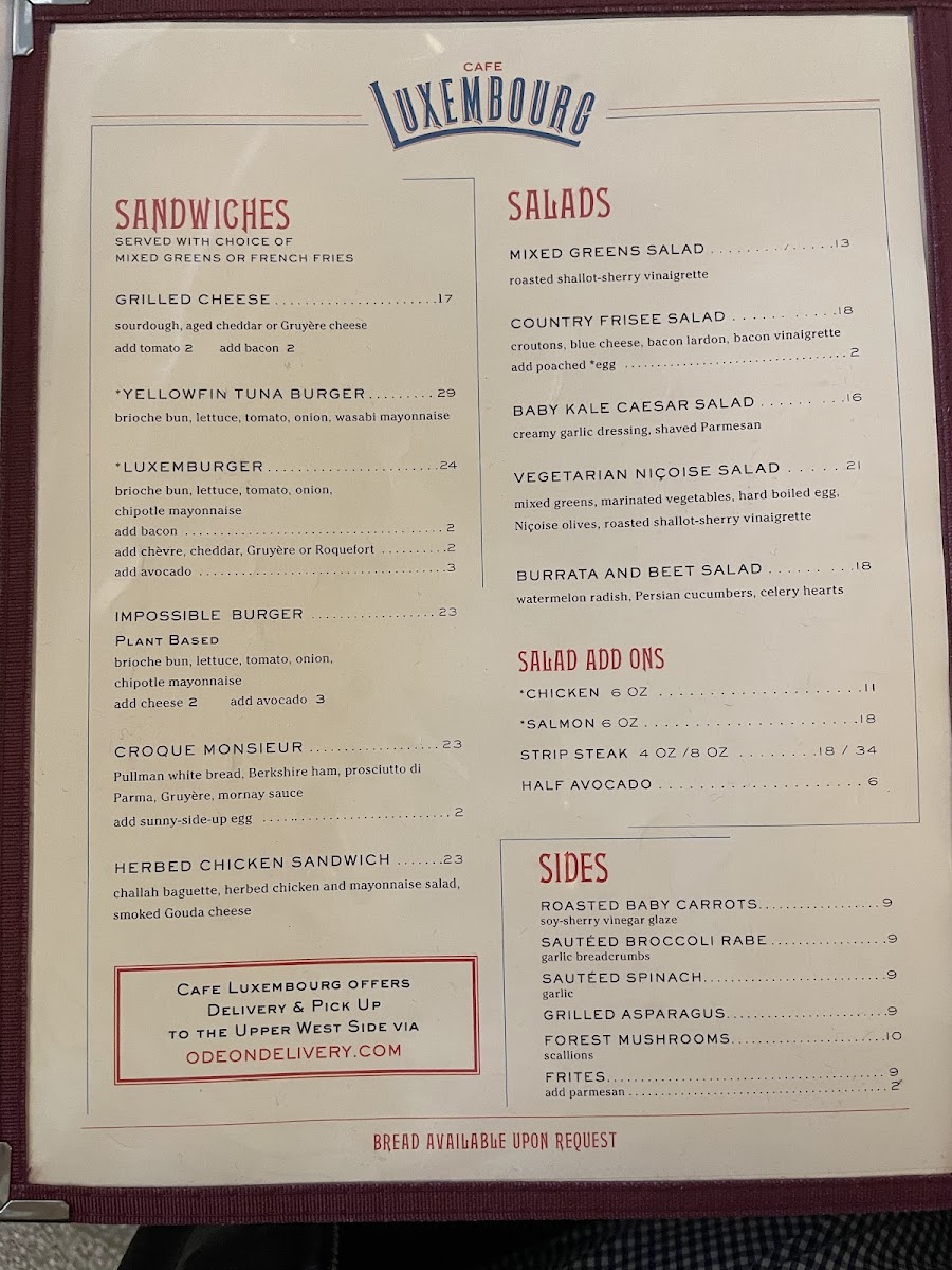 Cafe Luxembourg - NY 10023 Menu